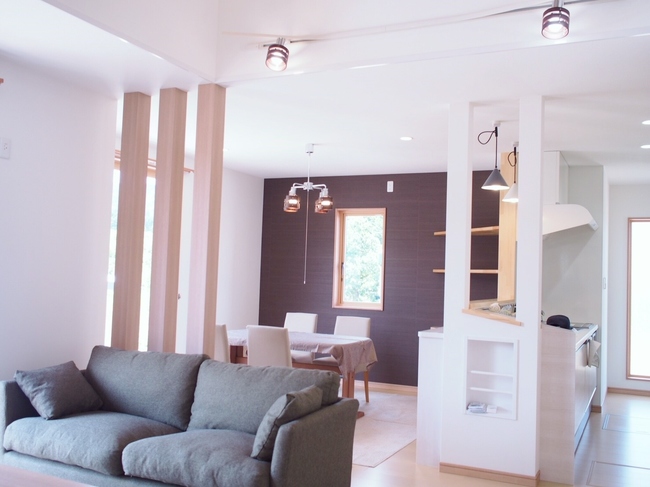 ~吹き抜けのある家~ W様邸(松江市) 1階床面積 70.38㎡(21.29坪) 2階床面積 57.89㎡(17.51坪) 延床面積 128.27㎡(38.80坪) 商品名 : HEIG工 法 : 木造軸組み金物工法/エコ・アイ工法 ◆家事1/2設計◆吹抜け&バルコニー◆書斎 3帖◆和室 6帖